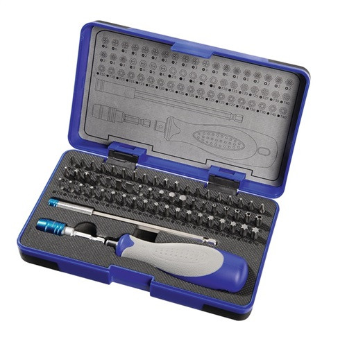 bestückt mit hochwertigen Bits zum Einsatz in Bit-Handhaltern und Maschinenbetrieb (konv. Akkuschrauber) · 2 Bit-Haltern und zusätzlichen Mehrkomponenten-Griff
