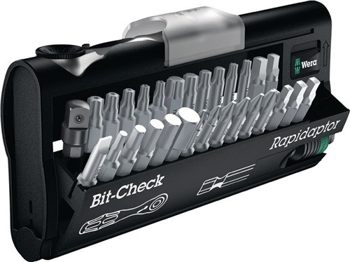 bestückt mit hochwertigen Bits, Bit-Knarre (Vollstahlausführung), Bit-Halter Rapidaptor und Adapter für Nüsse Inhalt: 1 Bit-Halter Rapidaptor mit starkem Dauermagnet und Schnellwechselfutter (Länge 50 mm) 1 Bit-Knarre (Zyklop Mini Knarre) (Vollstahlausführung) 1 Bit für Schlitzschrauben 1,0 x 5,5 x 25 mm Bits für Schrauben mit Kreuzschlitz (PH), 2 St. 1 x 25, 3 St. 2 x 25 mm, 1 St. 3 x 25 mm Bits für Schrauben mit Kreuzschlitz (PZD), 1 St. 1x25 mm, 3 St. 2 x 25 mm, 1 St. 3 x 25 mm je 1 Bit für Schrauben mit Innensechskant-Profil Gr. 3,0 x 25 mm, 4,0 x 25 mm, 5,0 x 25 mm, 6,0 x 25 mm, 8,0 x 25 mm je 1 Bit für Schrauben mit Innen-Torx®-Profil Gr. T 10 - T 15 - T 20 - T 25 - T 30 - T 40 je 1 Bit mit Bohrung für Schrauben mit Innen-TORX®-Profil auch mit Sicherungsstift Gr. T 10 - T 15 - T 20 - T 25 - T 30 1 Adapter 6,3 mm (1/4")-Außenvierkant auf 6,3 mm (1/4")-Außensechskant · Weitere technische Eigenschaften Antrieb: 1/4″ • Verpackung: in Kunststoffbox