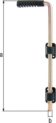 mit zwei Kunststoffführungen und Kunststoffgriff · Material: Stahl · Führungswinkel und Griff glasfaserverstärkter Kunststoff · Weitere technische Eigenschaften Oberfläche: Edelstahl matt • Anzahl Löcher: 4 • Maß b Ø: 16mm • Maß a: 500mm