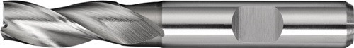 HSS-Co8 · DIN 844 · Typ N · Dreischneider · lang · Zentrumschnitt · Zylinderschaft mit Mitnahmefläche · rechtsschneidend · zum Fräsen von Werkstoffen mit geringer und mittlerer Festigkeit bis ca. 800 N/mm² · Nenn-Ø 9, 11, 13, 15 mm = Toleranz h10, Rest = e8 · Weitere technische Eigenschaften Einsatzlänge: 36mm • Freischliff: 11,5mm