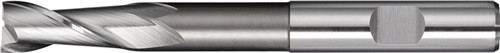 HSS-Co8 · Typ N · Zweischneider · lang · Zentrumschnitt · Zylinderschaft mit Mitnahmefläche · rechtsschneidend · zum Fräsen von Werkstoffen mit geringer und mittlerer Festigkeit bis ca. 800 N/mm² · Weitere technische Eigenschaften Einsatzlänge: 21mm • Freischliff: 3,9mm