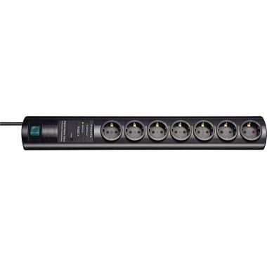 Schützt wertvolle Geräte vor Überspannungen. Optische Funktionsanzeige für Überspannungsschutz. Mit dem Ein/Aus Schalter des Gerätes, welches in der MasterSteckdose eingesteckt ist, können alle Geräte in den SlaveSteckdosen automatisch mit ein- und ausgeschaltet werden. Permanent, 1 Masterund 4 SlaveSteckdosen. Digital: Speichert auf Knopfdruck die richtige Einstellung für Ihr MasterGerät. Fortschrittlich: Schaltet Ihre SlaveGeräte sicher und schonend durch modernste Technik. Flexibel: Lässt sich bei Bedarf in einen PermanentModus umschalten. Formschönes und stabiles Gehäuse, poliert und hochbruchfest. Kabelausgang variabel auf beiden Seiten möglich. Sicherheitsschalter beleuchtet, zweipolig ein/ ausschaltbar. Mit Befestigungsösen zur Wandmontage. · max. Stromstärke: 19.500 A · Nennstrom: 16 A · Schrägkontakt vorhanden: Ja · Überspannungsschutz vorhanden: Ja · Werkstoff des Gehäuses: Polycarbonat · Zertifikat/Zulassung: Blauer Engel · Anzahl der Steckdosen: 7 Steckdosen · Länge: 55 cm · Winkel: 90 ° · Blauer Engel: Ja · Kontrollleuchte vorhanden: Ja · Kindersicherung vorhanden: Ja · Kabeltyp: H05VVF 3G1,5. · Garantiedauer: 2 Jahre · Garantie gewährt: Ja · Farbe: schwarz · Ein-/Ausschalter vorhanden: Ja · Länge der Zuleitung: 2 m