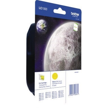 Brother Tintenpatrone LC1000Y ca. 400 Seiten gelb · Verwendung für Gerätetyp: Inkjetdrucker, Faxgeräte · Ausführung der Farbe: gelb · Farbe: gelb · max. Anzahl der Druckseiten: ca. 400 Seiten · Originalzubehör: Ja · Typbezeichnung der Verbrauchsmittelgruppe: LC1000Y · Verwendung für Druckertyp: DCP 130C, -330C, -350C, -357C, -540CN, -560CN, -750CW, -770C