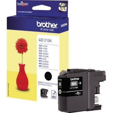 Brother Tintenpatrone LC121BK ca. 300 Seiten schwarz 3,9ml · max. Anzahl der Druckseiten: ca. 300 Seiten · Verwendung für Gerätetyp: Inkjetdrucker · Verwendung für Druckertyp: DCP J 132W, -152, -552DW, -752DW, MFC J 245, -285DW, -470DW, · Originalzubehör: Ja · Inhalt: 3,9 ml · Farbe: schwarz · Ausführung der Farbe: schwarz · Typbezeichnung der Verbrauchsmittelgruppe: LC121BK