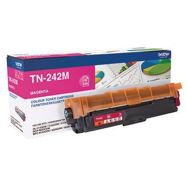 Brother Toner TN242M ca. 1.400 Seiten magenta · rebuilt: Nein · Originalzubehör: Ja · Verwendung für Gerätetyp: Laserdrucker · Verwendung für Druckertyp: DR 321CL, DCP 9022CDW, -9017CDW, HL 3142CW, -3152CDW, -3172C · refill: Nein · Kapazität geprüft gemäß: ISO/IEC 19798 · Ausführung der Farbe: magenta · Garantie gewährt: Nein · max. Anzahl der Druckseiten: ca. 1.400 Seiten · Farbe: magenta · DIN-Norm vorhanden: Nein · Typbezeichnung der Verbrauchsmittelgruppe: TN242M