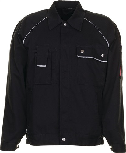 65 % Polyester / 35 % Baumwolle · Canvas- Bindung · ca. 320 g/m² · Geweberückseite sehr atmungsaktiv, besonders strapazierfähig, einlauffest nach DIN EN ISO 6330 · 2 eingesetzte Beuteltaschen aus Cordura® · Reflexbiesen am Ärmeleinsatz und an den Taschenpatten · 2 Brusttaschen, links mit Patte und Druckknöpfen, rechts mit zusätzlich aufgesetzter Handytasche · Ärmeltasche links mit aufgedoppelten Stiftfächern · Gummizug im Bund · verdeckte Druckknopfleiste als Frontverschluss · mit Druckknopf verstellbare Ärmelbündchen · Weitere technische Eigenschaften Stoffgewicht ca.: 320g/m² • Ausführung: original Cordura® mit Original-Teflon™-Beschichtung • Norm: DIN EN ISO 6330