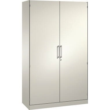 Korpus in filigraner Kantenoptik, zueinanderschlagend für gemeinsamen Verschluss frontbündigem Sockel mit integrierter Niveauregulierung, bequem von innen bedienbar. 2 Stahltüren doppelwandig, gedämmt für angenehmes Geräuschverhalten. Türaufhängung in innen liegenden Scharnieren mit großzügigem Öffnungswinkel, zueinanderschlagend für gemeinsamen Verschluss.