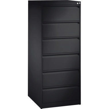 Schubladenschrank Acurado als Karteischrank. Je Bahn 2 verstellbare Pendelbleche, langlebige Teleskopschienen. Zentralverschluss mit Wechselzylinder, matt vernickelt.