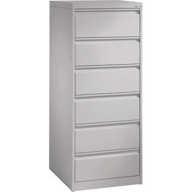 Schubladenschrank Acurado als Karteischrank. Je Bahn 2 verstellbare Pendelbleche, langlebige Teleskopschienen. Zentralverschluss mit Wechselzylinder, matt vernickelt.