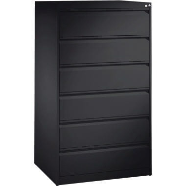 Schubladenschrank Acurado als Karteischrank. Je Bahn 2 verstellbare Pendelbleche, langlebige Teleskopschienen. Zentralverschluss mit Wechselzylinder, matt vernickelt.