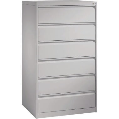 Schubladenschrank Acurado als Karteischrank. Je Bahn 2 verstellbare Pendelbleche, langlebige Teleskopschienen. Zentralverschluss mit Wechselzylinder, matt vernickelt.