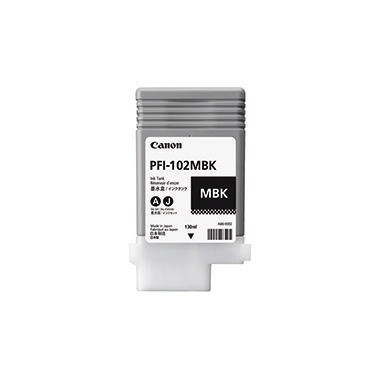 Canon Tintenpatrone PFI102MBK ca. 740 Seiten schwarz matt 130ml · Typbezeichnung der Verbrauchsmittelgruppe: PFI102MBK · Ausführung der Farbe: schwarz matt · Verwendung für Gerätetyp: Inkjetdrucker · Verwendung für Druckertyp: IPF 500, -510, -600, -605, -610, -650, -655, -700, -710, -71 · max. Anzahl der Druckseiten: ca. 740 Seiten · Farbe: schwarz matt · Inhalt: 130 ml · Originalzubehör: Ja