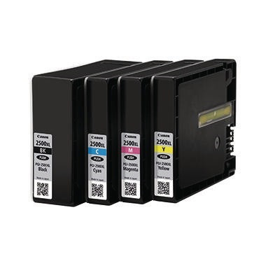 Canon Tintenpatrone PGI2500XL ca. 1 x 2.500 Seiten schwarz, ca. 3 x 1.200 Seiten farbig schwarz, mehrfarbig 4 St./Pack. · Farbe: schwarz, cyan, magenta, gelb · Verwendung für Gerätetyp: Inkjetdrucker · Verwendung für Druckertyp: MAXIFY iB 4050, iB4150, MB 5050, -5150, -5450, -5350 · Typbezeichnung der Verbrauchsmittelgruppe: PGI2500XL · refill: Nein · Originalzubehör: Ja · nachfüllbar: Nein · max. Anzahl der Druckseiten: ca. 2.500 Seiten schwarz, ca. 3 x 1.200 Seiten farbig · Ausführung der Farbe: schwarz, mehrfarbig · freier Inhalt: 70,9 ml schwarz, 3 x 19,3 ml farbig · dokumentenecht: Nein · DIN-Norm vorhanden: Nein · Ausführung des Inhalts (Set): 4 St./Pack. · Ausführung des Inhalts (Packung): 4 St./Pack. · Garantie gewährt: Nein