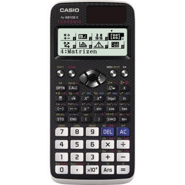 CASIO präsentiert mit dem technisch-wissenschaftlichen Rechner FX-991DE X die neue ClassWiz-Serie. Diese hat zahlreiche Innovationen zu bieten: Natürliche sowie gleichzeitige Anzeige von Eingabe und Ergebnis (Natural-V.P.A.M.). Eine Tabellenkalkulation, die es dem Anwender erstmalig auf einem technisch-wissenschaftlichen Taschenrechner ermöglicht, die grundlegenden Berechnungen einer Tabellenkalkulation zu nutzen. Und eine Ergebnis-Visualisierung auf dem Smartphone oder Tablet, die durch die neu verfügbaren QR-Codes realisierbar wird. Der Rechner arbeitet im reinen Solarbetrieb, sobald das ECO-Symbol im Display erscheint. · Farbe: schwarz · Anzahl der Bildpunkte (dots): 192 x 62 dots · weitere Funktionen: Bruchrechnung, Winkelmaße DEG/RAD/GRAD, Komplexe Zahlen, Zuf · statistische Berechnung möglich: Ja · Prozentrechnung möglich: Ja · Maße: 165,5 x 11,1 x 77 mm (B x H x T) · Masse (Gewicht): 90 g · LCD-Anzeige vorhanden: Ja · trigonometrische Funktionen vorhanden: Ja · Berechnung (differential) möglich: Ja · automatische Abschaltung vorhanden: Ja · Ausführung des Displayanzeige-Umfangs: 16/10+2-stellig · Ausführung der Lieferzusammenstellung: inkl. Hardcase · Art des Displays: Dot-Matrix · Art der Hilfsenergie: Solar-Energie, Batterie · Anzahl der Funktionen: 696 Funktionen · Berechnung (integral) möglich: Ja · Anzahl der Variablenspeicher: 9 Variablenspeicher