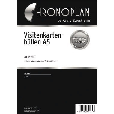 Legen Sie Visitenkarten Ihrer Geschäftskontakten übersichtlich in Ihrem Terminplaner ab. · Ausführung des Inhalts (Packung): 3 St./Pack. · Werkstoff: Folie · Verwendung für Produkt: Terminplaner · Papierformat: DIN A5 · Farbe: transparent · Ausführung der Lochung: Universallochung · Maße: 175 x 210 mm (B x H)