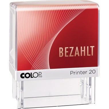 Die richtige Größe für die wichtigsten Informationen. Erzeugt einen rechteckigen Abdruck. Herausragendes Merkmal ist beim Printer 20 das patentierte, große Indexfenster, das es ermöglicht, neben dem Textabdruck flexibel und vor allem einfach auch personalisierte Informationen auf dem Indexkärtchen abzubilden. · Höhe der Schrift: 10 mm · Werkstoff: Kunststoff · Stempelkissen austauschbar: Ja · Farbe: rot · Ausführung der Drucktexte: BEZAHLT · Abmessung der Stempelfläche: 38 x 14 mm (B x H) · Stempeltext austauschbar: Nein