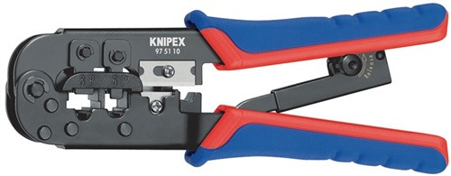 zum Schneiden und Abmanteln von flachem, nicht abgeschirmtem Telefonkabel und Verpressen von Westernsteckern · exakter Crimpvorgang durch Parallelvercrimpung und Zwangssperre (entriegelbar) · kraftsparende Hebelmechanik · mit Längenabschneider und Abmantelungsmesser für Flachkabel 6 und 12 mm Länge · mit zusätzlicher Abisolierfunktion für Rundkabel Kopf brüniert · Griffe mit ergonomischen 2-Komponenten-Hüllen