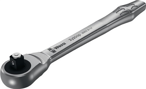 6,3 mm (1/4 ″)-Vierkantantrieb · sehr robuste, feinverzahnte, geschmiedete Vollmetallknarre · aus Chrom-Molybdän-Stahl · mit unverlierbarem Durchsteckvierkant und Nussverriegelungsfunktion · schlanke Bauform · langer Hebel · feinverzahnt · Rückschwenkwinkel nur 4,7° · butterweiches Umschalten · (optimal geeignet auch für sehr beengte Arbeitsräume)