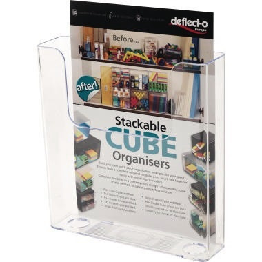 Prospekthalter mit flacher Rückseite. Kein Material zur Befestigung enthalten. · Verwendung für Papierformat: DIN A5 · Wandbefestigung möglich: Ja · Farbe: transparent · Anzahl der Fächer: 1 Fach · Werkstoff: Polystyrol · Maße: 17,3 x 18 x 4,5 cm (B x H x T)