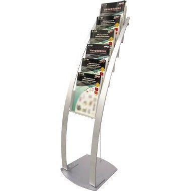 Deflecto® Prospektständer Contemporary 38 x 125 x 42 cm (B x H x T) Metall/Polystyrol silber/transparent gefrostet 6 Fächer · Werkstoff des Fachbodens: Polystyrol · zusammenklappbar: Nein · Werkstoff des Gestells: Metall · Verwendung für Papierformat: DIN A4 · Maße: 38 x 125 x 42 cm (B x H x T) · Farbe: silber/transparent gefrostet · Anzahl der Fächer: 6 Fächer · Farbe des Gestells: silber · Werkstoff: Metall/Polystyrol · drehbar: Nein · Lenkrolle feststellbar: Nein