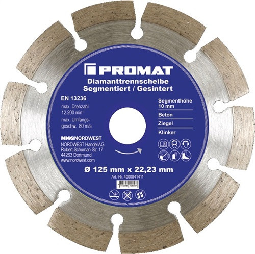 Diamanttrennscheibe D.180mm Bohr.22,23mm segmentiert 10mm PROMAT