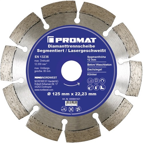 segmentiert / lasergeschweißt · Trockenschnitt · zum Trennen von Beton, Dachziegeln, mittelharten Klinker, armiertem Beton, Waschbeton, Baustellenmaterial · besonders stabile Ausführung · Segmenthöhe 12 mm · Weitere technische Eigenschaften Ausführung: lasergeschweißt