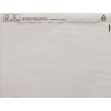 Zum Anbringen von Begleitpapieren außen an der Sendung. · Format des Umschlages: DIN C6 · Werkstoff: LDPE, recycelt · Maße: 175 x 140 mm (B x H) · Dicke der Folie: 60 µm · Ausführung des Inhalts (Packung): 250 St./Pack. · Verschlusstechnik: mit Selbstklebung · Farbe: transparent
