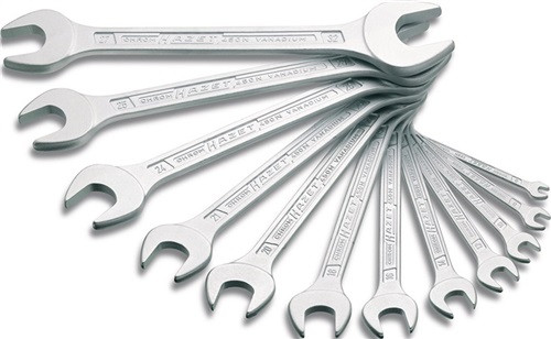 N/A · geschmiedet · verchromt · Maulstellung 15 ° · mit flachen Köpfen · DIN 3110 / ISO 10102 · Weitere technische Eigenschaften Schlüsselweite max.: 32mm • Material: CV-Stahl • Maulstellung: 15° • Schlüsselweite min.: 6mm • Schlüsselweiten: 6 x 7, 8 x 9, 10 x 11, 12 x 13, 14 x 15, 16 x 17, 18 x 19, 20 x 22, 21 x 23, 24 x 26, 25 x 28, 27 x 32mm