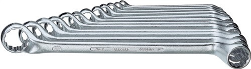 CV-Stahl · verchromt · tief gekröpft · mit dünnwandigen Ringen · mit Unit-Drive-Profil (schont die Schraubenköpfe - keine Kantenverquetschung durch Kraftansatz auf die Fläche) DIN 838 / ISO 3318 ISO 1085 / ISO 10104 · Weitere technische Eigenschaften Schlüsselweiten: 6 x 7, 8 x 9, 10 x 11, 12 x 13, 14 x 15, 16 x 17, 18 x 19, 20 x 22, 21 x 23, 24 x 27, 25 x 28, 30 x 32mm