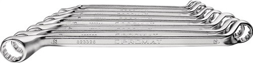 CV-Stahl · geschmiedet · verchromt · tief gekröpft · mit dünnwandigen Ringen · Ringe mit schraubenschonendem Promat- ENERGY -Profil, die Kräfte werden auf die Flächen der Schrauben und Muttern übertragen, das schont die Schrauben und das Werkzeug und ermöglicht die Übertragung hoher Drehmomente DIN 838 / ISO 3318 ISO 1085 / ISO 10104 · Weitere technische Eigenschaften Schlüsselweiten: 6 x 7, 8 x 9, 10 x 11, 12 x 13, 14 x 15, 16 x 17, 18 x 19, 20 x 22mm