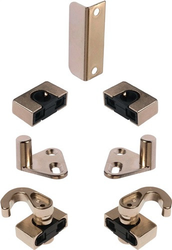 zum Aufschrauben · für Drehstangen 6/5 mm · Zamak vernickelt · mit Schließblech, Schließhaken, Anschläge und Stangenführung · Weitere technische Eigenschaften Oberfläche: vernickelt