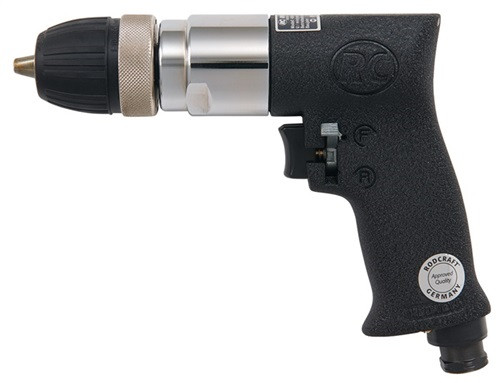 Einhandumschaltung Rechts-/Linkslauf · Abluftführung durch den Handgriff · Röhm-Schnellspannbohrfutter · Weitere technische Eigenschaften Gewicht: 1,15kg • Luftverbrauch: 460l/min • Arbeitsdruck: 6,3bar