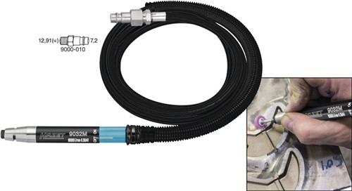 zur präzisen Bearbeitung von Werkstücken auch unter extrem beengten Platzverhältnissen · Schlauchlänge 1500 mm · Drehventil · Weitere technische Eigenschaften Gewicht: 0,21kg • Arbeitsdruck: 6,3bar • Gewicht: 212 g · Luftbedarf: 75 [l/min] l/sec Vibrationsbeschleunigung: 2,5 m/s2 · Umdrehungen: 60000 U/min · Kupplungsstecker: Nennweite 7,2 (inklusive) · Gesamtlänge: 132 mm · Schlauchdurchmesser (empfohlen): 5 mm · Schalldruckpegel: 83 dB(A) Lp A · Schallleistungspegel: 90 db(A) Lp W · Luftanschluss: 12,91 (1/4Zoll) mm · Betriebsdruck: 6,3 bar · Max. Drehzahl (Umdrehungen/min): 60000 upm