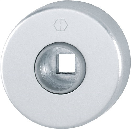Rosetten Ø 53 mm · Rosettenstärke 9 mm · Nockenabstand 38 mm inkl. Befestigungsscheiben · für Türstärke 37 - 42 mm · mit Rückholfederpaket · Lochung rund · Weitere technische Eigenschaften Farb-Nr.: F1 • Detail: mit Rückholfederpaket