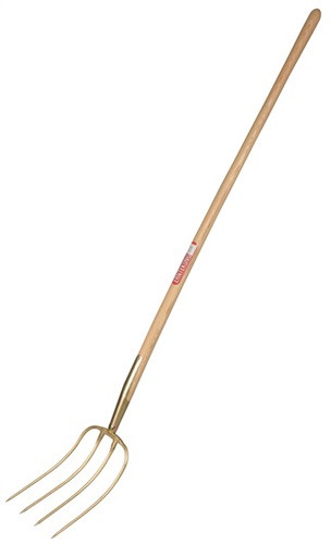 geschmiedet · gold lackiert · 4-zinkig · mit lackiertem Eschenstiel 135 cm · Weitere technische Eigenschaften Gewicht: 1500g • Ausführung: geschmiedet, mit Stiel