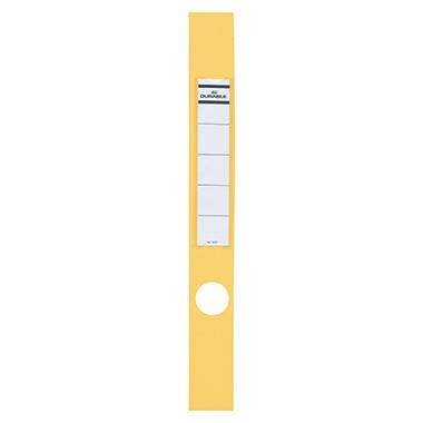 Ordner-Rückenschild aus Kunststoff-Folie. Aufdruck vorhanden. Beschriftbar mit Online-Beschritungssoftware DURAPRINT®. · Anzahl der Blätter je Packung: 10 Bl./Pack. · Maße: 40 x 390 mm (B x H) · Verwendung für Druck- oder Schreibgerät: Schreibgeräte, Schreibmaschine · Werkstoff: Kunststoff · umlaufender Rand vorhanden: Nein · Text des Aufdruckes: DURABLE · selbstklebend: Ja · Packungsmenge: 10 Etik./Pack. · Griffloch vorhanden: Ja · Format des Schildes: schmal/lang · Farbe: gelb · Farbe des Aufdrucks: schwarz · Aufdruck vorhanden: Ja · Anzahl der Etiketten je Blatt: 1 Etik./Bl. · Anzahl der Etiketten je Packung: 10 Etik./Pack.