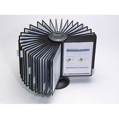 Der obere Griff erleichtert das Drehen des Systems. Durch die Zapfenmechanik sind die Tafeln leicht herauszunehmen und einzusetzen. Mit Gussfuß für sicheren und rutschfesten Stand. · Masse (Gewicht): 5,2 kg · Anzahl der mitgelieferten Sichttafeln: 40 Sichttafeln · Verwendung für Papierformat: DIN A4 · Werkstoff: Polypropylen · Tiefe: 250 mm · max. Aufbewahrungsmenge: 40 Sichttafeln · Maße: 44 x 30 x 25 cm (B x H x T) · Garantiedauer: 5 Jahre · Garantie gewährt: Ja · Farbe: schwarz · Farbe der Sichttafel: schwarz · Beschreibung der Besonderheiten: der obere Griff erleichtert das Drehen des Systems. Durch di · Breite: 440 mm · Höhe: 300 mm