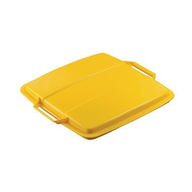 Große Abfall- und Wertstofftonne in quadratischer Form. Ideal für Müllsammlung und Recycling-Materialien. Lebensmittelecht in allen Farben (gemäß der EU-Verordnung 1935/2004/EG), mit Ausnahme der Farbe Schwarz, da diese Anteile recycelten Materials enthält. Rechteckiger Deckel für DURABIN 90 mit Griffen für leichtes Abnehmen. · Volumen: 90 l · Werkstoff: Polypropylen · Maße: 52 x 61 x 49 cm (B x H x T) · Griffrand vorhanden: Ja · Farbe: grau · Farbe des Deckels: gelb · Anzahl der Sortierfächer: 1 Sortierfach · Deckel vorhanden: Ja · Form: quadratisch
