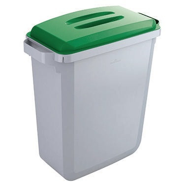 Mit robusten Tragegriffen für einfachen Transport und Haltevertiefungen auf der Bodenunterseite zum sicheren Entleeren. Ideal für Müllsammlung und Recycling-Materialien. · flammsicher: Nein · Werkstoff: Polypropylen · Volumen: 60 l · Maße: 59 x 60 x 28,2 cm (B x H x T) · Form: rechteckig · Farbe: grau · Farbe des Deckels: grün · Deckel vorhanden: Ja · Anzahl der Sortierfächer: 1 Sortierfach · Griffrand vorhanden: Ja