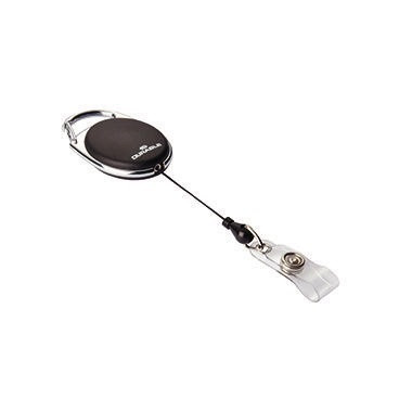 Ovales Jojo in ansprechendem Design. Mit Metallclip-Befestigung und Druckknopf-Schlaufe zur einfachen Kombination mit allen DURABLE-Namensschildern oder Sicherheitsausweishaltern, die über eine Clip-Ausstanzung oder Nadel verfügen. · Werkstoff: Metall/Kunststoff · Verwendung für Produkt: Namensschilder, Sicherheitsausweishalter · max. Länge der Zugschnur: 0,8 m · Farbe: schwarz · Befestigungstechnik: Clip · Art des Verschlusses: Druckknopf-Schlaufe · Ausführung des Inhalts (Packung): 10 St./Pack.