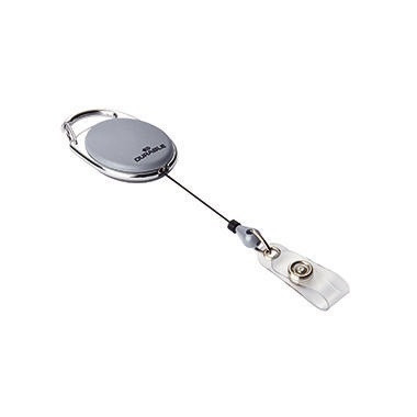 Ovales Jojo in ansprechendem Design. Mit Metallclip-Befestigung und Druckknopf-Schlaufe zur einfachen Kombination mit allen DURABLE-Namensschildern oder Sicherheitsausweishaltern, die über eine Clip-Ausstanzung oder Nadel verfügen. · Werkstoff: Metall/Kunststoff · Art des Verschlusses: Druckknopf-Schlaufe · Ausführung des Inhalts (Packung): 10 St./Pack. · Befestigungstechnik: Clip · Farbe: grau · max. Länge der Zugschnur: 0,8 m · Verwendung für Produkt: Namensschilder, Sicherheitsausweishalter