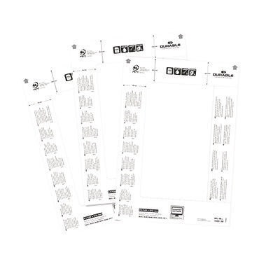 Exakt abgestimmt auf die kostenlose Beschriftungssoftware DURAPRINT® - www.duraprint.de. · Maße: 61/122 x 210 mm (B x H) · Werkstoff: Karton · Verwendung für Produkt: 8052 · Verwendung für Druck- oder Schreibgerät: Laserdrucker, Inkjetdrucker, Matrixdrucker, Kopierer · Grammatur: 150 g/m² · Farbe: weiß · Anzahl der Blätter je Packung: 20 Bl./Pack. · Ausführung des Inhalts (Packung): 20 St./Pack.