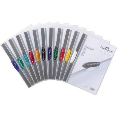 Mit seitlich schwenkbarer Kunststoffklemme. · Farbe der Klemme: rot, gelb, grün, dunkelblau, schwarz · Material der Klemme: Kunststoff · Werkstoff: Polypropylen · Verwendung für Papierformat: DIN A4 · max. Aufbewahrungsmenge: 30 Bl. · max. Anzahl der Blätter: 30 Bl. (80 g/m²) · Höhe: 305 mm · Breite: 218 mm · Farbe der Rückseite: transparent · Farbe der Vorderseite: transparent · Maße: 22,2 x 30,5 cm (B x H)