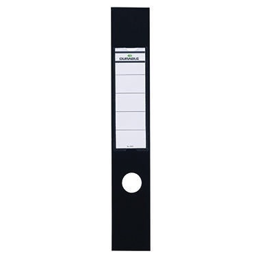 Beschriftbar mit Online-Beschritungssoftware DURAPRINT®. · Packungsmenge: 10 Etik./Pack. · Format des Schildes: breit/lang · Werkstoff: Kunststofffolie · Verwendung für Druck- oder Schreibgerät: Laserdrucker, Farblaserdrucker, Inkjetdrucker, Matrixdrucker · selbstklebend: Ja · Maße: 60 x 390 mm (B x H) · Höhe des Schildes: 390 mm · Griffloch vorhanden: Ja · Anzahl der Etiketten je Packung: 10 Etik./Pack. · Farbe: schwarz · Text des Aufdruckes: DURABLE · Anzahl der Etiketten je Blatt: 1 Etik./Bl. · Aufdruck vorhanden: Ja · Anzahl der Blätter je Packung: 10 Bl./Pack. · Beschreibung der Besonderheiten: auswechselbares Einsteckschild aus 135 g/m² Karton, mit Loch · Breite des Schildes: 60 mm · Farbe des Aufdrucks: schwarz