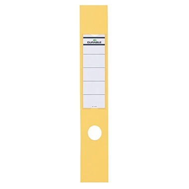 Beschriftbar mit Online-Beschritungssoftware DURAPRINT®. · Griffloch vorhanden: Ja · Aufdruck vorhanden: Ja · Verwendung für Druck- oder Schreibgerät: Laserdrucker, Farblaserdrucker, Inkjetdrucker, Matrixdrucker · Text des Aufdruckes: DURABLE · selbstklebend: Ja · Packungsmenge: 10 Etik./Pack. · Werkstoff: Kunststofffolie · Maße: 60 x 390 mm (B x H) · Höhe des Schildes: 390 mm · Farbe: gelb · Farbe des Aufdrucks: schwarz · Beschreibung der Besonderheiten: auswechselbares Einsteckschild aus 135 g/m² Karton, mit Loch · Anzahl der Etiketten je Packung: 10 Etik./Pack. · Anzahl der Etiketten je Blatt: 1 Etik./Bl. · Anzahl der Blätter je Packung: 10 Bl./Pack. · Format des Schildes: breit/lang · Breite des Schildes: 60 mm