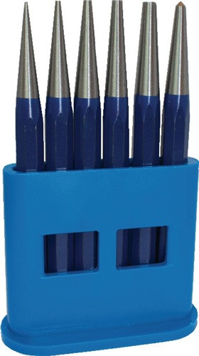 DIN 6458 · Chrom-Vanadium-Lufthärtestahl · gehärtet · Schlagkopf vergütet · Weitere technische Eigenschaften Inhalt: 6 teilig • Bestückung: 1-2-3-4-5 + Körner-D. 4mm • Verpackung: Kunststoffhalter • Norm: DIN 6458
