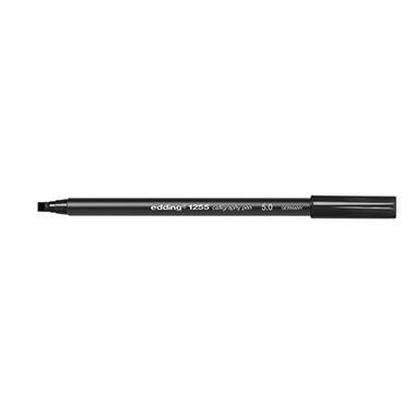 edding Fasermaler calligraphy pen 1255 5mm schwarz nicht auswaschbar · Schreibfarbe: schwarz · Ausführung der Spitze: Kalligrafiespitze · wischfest: Ja · wetterfest: Ja · wasserfest: Ja · Strichstärke: 5 mm · Spitze druckgesichert: Ja · lichtbeständig gegeben: Ja · kann einige Tage offen liegen bleiben ohne einzutrocknen: Nein · Farbe des Schaftes: schwarz · Clip vorhanden: Nein · Bezeichnung der Schreibflüssigkeit: pigmentierte, permanente Tinte auf Wasserbasis · auswaschbar: Ja · Material des Schaftes: Kunststoff