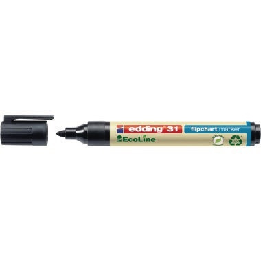 Kunststoffteile bestehen insgesamt mindestens zu 90% aus recyceltem Material (83% post-consumer). Speziell zum Schreiben auf Flipchartpapier. Geruchslose Tinte schlägt nicht auf die nachfolgenden Seiten durch. · kann einige Tage offen liegen bleiben ohne einzutrocknen: Ja · Strichstärke: 1,5-3 mm · Spitze austauschbar: Ja · Schreibfarbe: schwarz · nachfüllbar: Ja · Farbe des Schaftes: natur · Clip vorhanden: Ja · Bezeichnung der Schreibflüssigkeit: Tinte auf Wasserbasis · Ausführung der Spitze: Rundspitze · Material des Schaftes: Kunststoff · Kappe umsteckbar: Ja