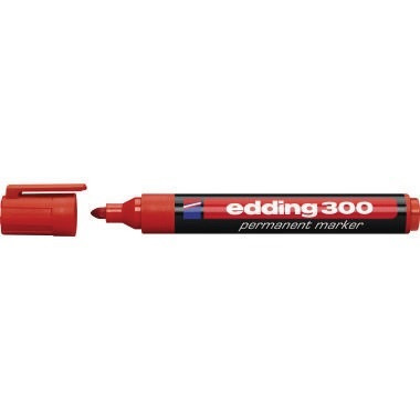 Permanentmarker zum Beschriften, Markieren und Kennzeichnen von fast allen Materialien wie z.B. Papier, Karton, Metall, Kunststoff und Glas. · Produktverwendung: Folie, Glas, Holz, Karton, Papier, Kunststoff, Gummi, Leder, · schnelltrocknend: Ja · Schreibfarbe: rot · Spitze austauschbar: Ja · Strichstärke: 1,5-3 mm · nachfüllbar: Ja · wischfest: Ja · Kappe umsteckbar: Ja · wasserfest: Ja · Ausführung der Spitze: Rundspitze · lichtbeständig gegeben: Ja · kann einige Tage offen liegen bleiben ohne einzutrocknen: Nein · Farbe des Schaftes: schwarz · Druckmechanik vorhanden: Nein · Clip vorhanden: Ja · Bezeichnung der Schreibflüssigkeit: permanente, geruchsarme Tinte, xylol- und toluolfrei · Ausführung der Griffzone: rund · Material des Schaftes: Kunststoff