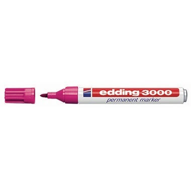 Permanentmarker zum Beschriften, Markieren und Kennzeichnen von fast allen Materialien wie z.B. Papier, Karton, Metall, Kunststoff und Glas. · Produktverwendung: Folie, Glas, Holz, Karton, Papier, Kunststoff, Gummi, Leder, · schnelltrocknend: Ja · Schreibfarbe: rosa · Spitze austauschbar: Ja · Strichstärke: 1,5-3 mm · Material des Schaftes: Aluminium · wischfest: Ja · lichtbeständig gegeben: Ja · wasserfest: Ja · Ausführung der Griffzone: rund · Kappe umsteckbar: Ja · kann einige Tage offen liegen bleiben ohne einzutrocknen: Nein · Farbe des Schaftes: weiß · Druckmechanik vorhanden: Nein · Clip vorhanden: Nein · Bezeichnung der Schreibflüssigkeit: permanente, geruchsarme Tinte, xylol- und toluolfrei · Ausführung der Spitze: Rundspitze · nachfüllbar: Ja